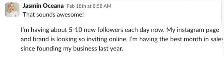 Jasmin’s now gaining 5–10 new followers a day — and her brand is working